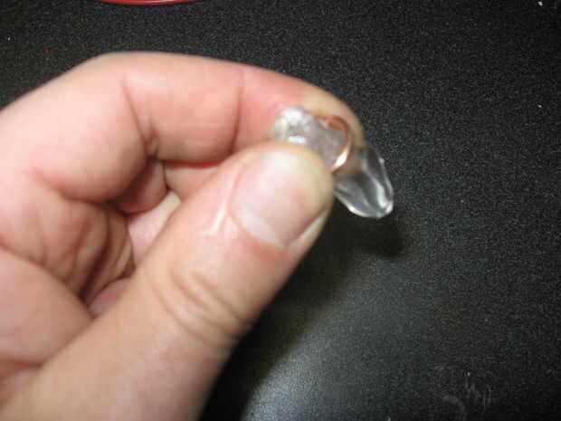 Firmemente utilizando el cristal como guía, envuelva el cable pelado varias veces alrededor de un extremo, asegúrese de que dejar varias pulgadas de alambre para conectar a la base.