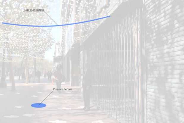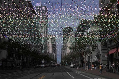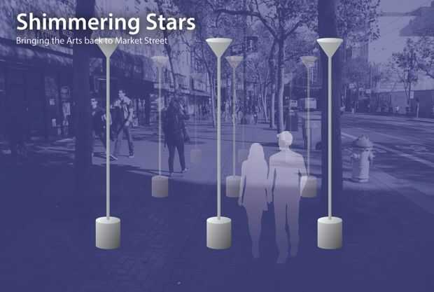Con una visión para hacer brillantes estrellas en la calle mercado, exploramos varios materiales, incluyendo el acoplamiento del metal, cortina de lámpara y filtro de color. Un gran reto era cómo hacer suficiente "efecto brillante" durante el día, ya que cualquier fuente de luz no es lo suficientemente fuerte en comparación con la luz del sol. En el proceso de exploración, encontramos que una bola puede generar efecto brillante mediante el aprovechamiento de la luz fuerte del sol.