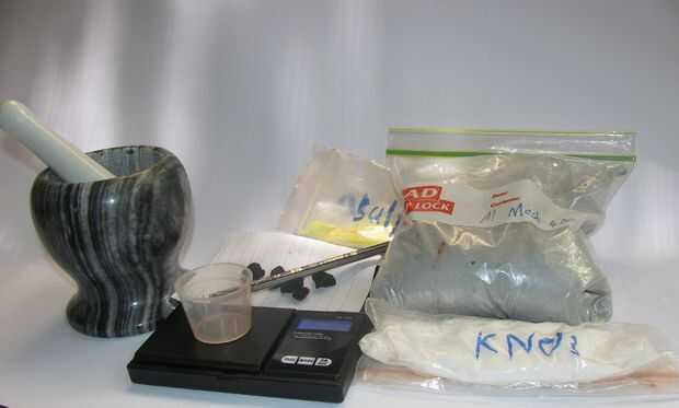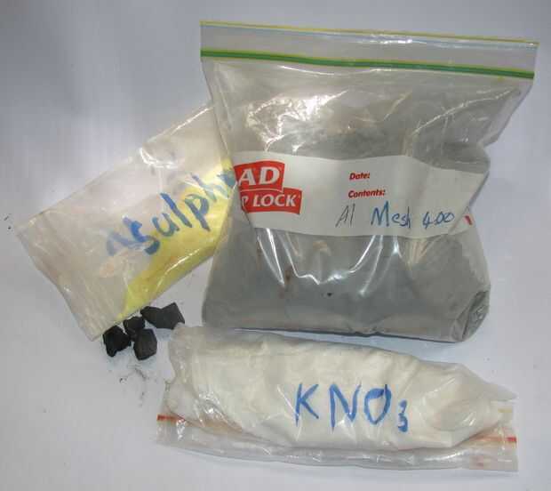 En la reacción de azufre actúa como un combustible para el nitrato de potasio para oxdize