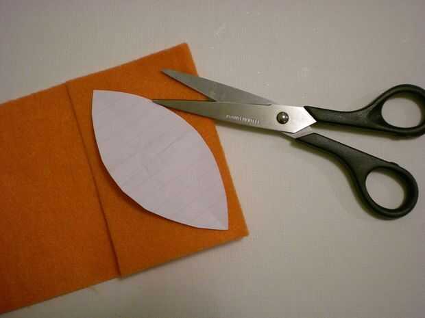 2. veces sobre el fieltro y poner la plantilla encima de la sección de doblado. Utilice las tijeras de tela para cortar alrededor de la plantilla, a través de ambas capas.