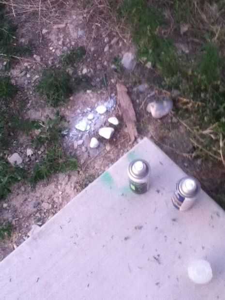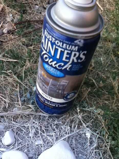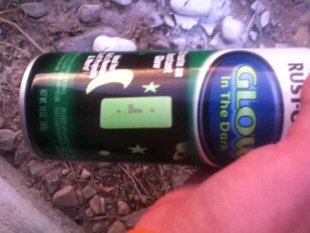 Pintura en aerosol blanco algunas pequeñas rocas brillan en la oscuridad pintura de aerosol de pintura exterior. La pintura tiene los humos.