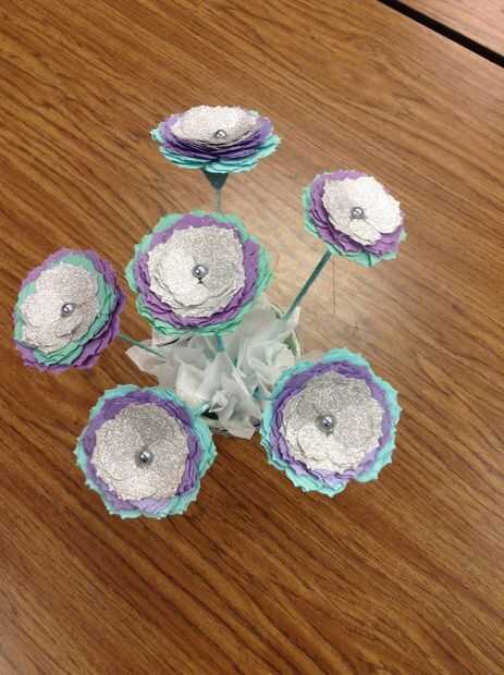 Este proyecto comenzó como un regalo a un amigo que estaba a punto de casarse. Flores de papel bonita, bonita que siempre traerá brillo y flor en su vida, dispuesto en un arreglo de puñado como un pedazo de centro. La pieza original está viajando por