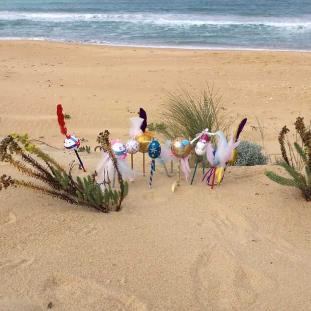 • Los huevos en diversos lugares de la fotografía. En este ejemplo usé el bush australiano y la playa.