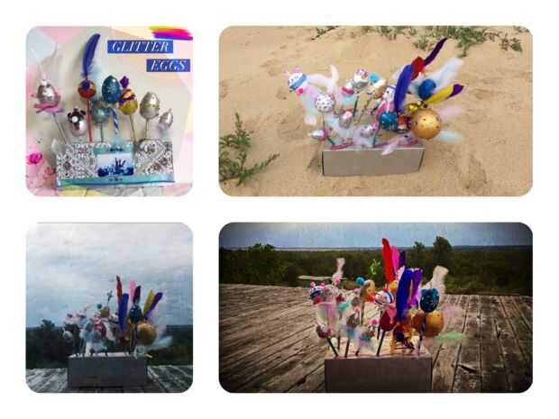 • Decorar una caja plana, rectangular, de cartón (yo usé una caja que contiene jabones decorativos) con la izquierda sobre decoraciones de huevo.