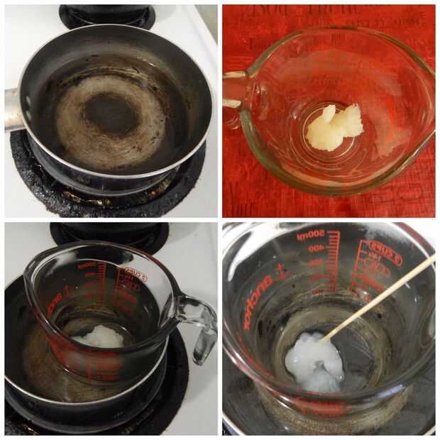 Calentar agua en un recipiente grande, coloque la taza de medición descansando dentro. Mezclar suavemente, la vaselina con pincho a fuego bajo.