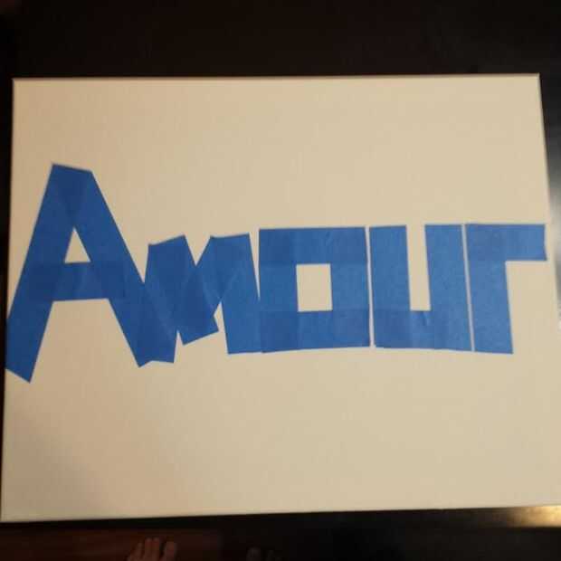 Decidir qué palabra desea han escrito sobre el lienzo y usar cinta de pintor para escribir hacia fuera. Sugiero usar tijeras en lugar de la cinta de rasgado para que tenga bordes aseados. Bordes superpuestos también ayudan a mantener las cosas juntas. Asegúrese de que todos la cinta si firmemente presionada para que no tenga brillo y pegamento del aerosol se sobre el lienzo limpio.