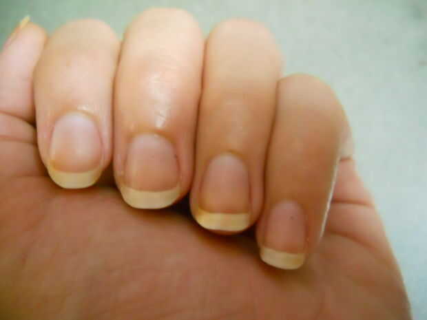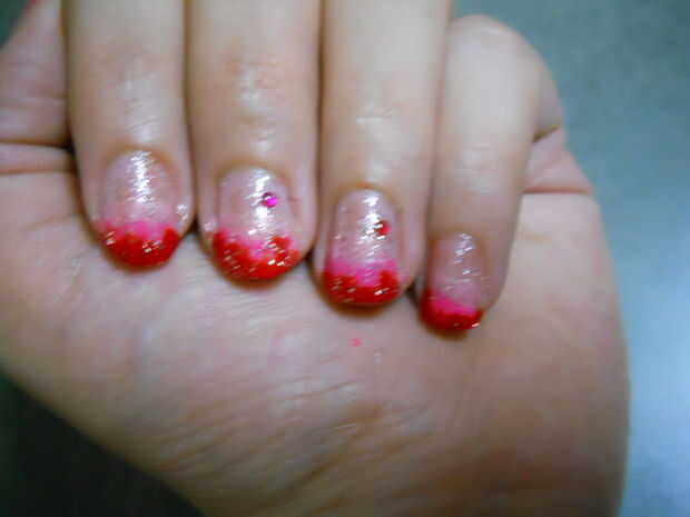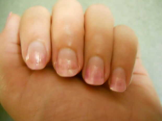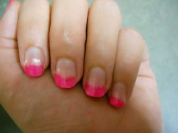 lo apliqué esmalte rosa muy ligero de mitad de camino de clavos.