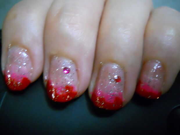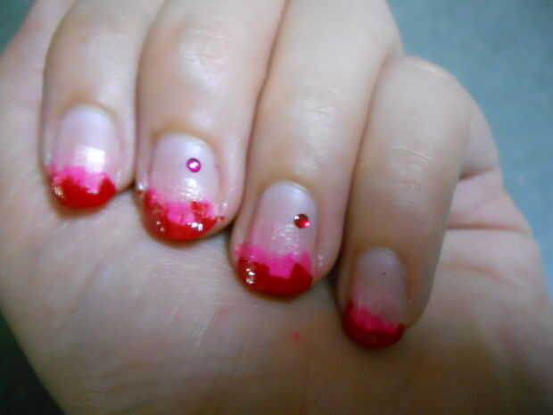 entonces puse dos piedras (o lo que se llama del kit del arte del clavo) en dos clavos. (Me gusta más rojo, color de rosa no coincide con)