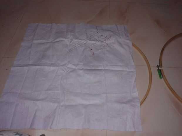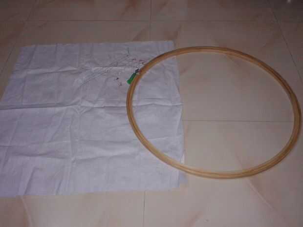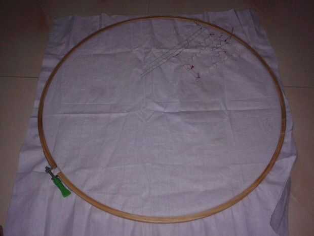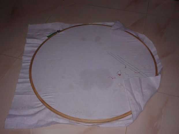 7) Tire de la tela en todo el lado del anillo y enderezad el paño (con hacia fuera las arrugas).