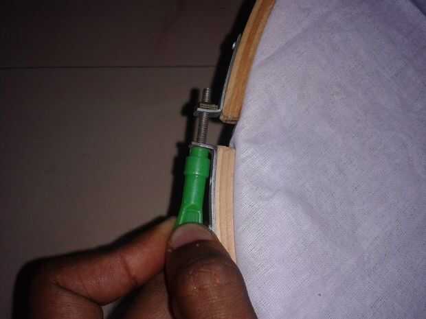 8) completamente apretado el tornillo. Ahora el trapo está listo para el estiramiento.