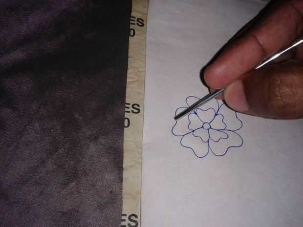 1) si expertos en dibujo dibuja tu diseño en mano en la tela con lápiz blanco (incluso experto en u en el dibujo si quieres mismo diseño y tamaño de lote de vestido entonces dibujar en papel y rastrearlo).