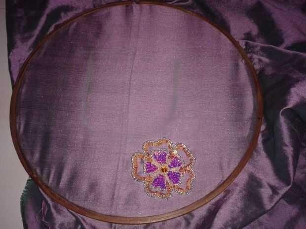 5) mediante el uso de la aguja de aari parte recalco el diseño en el paño.