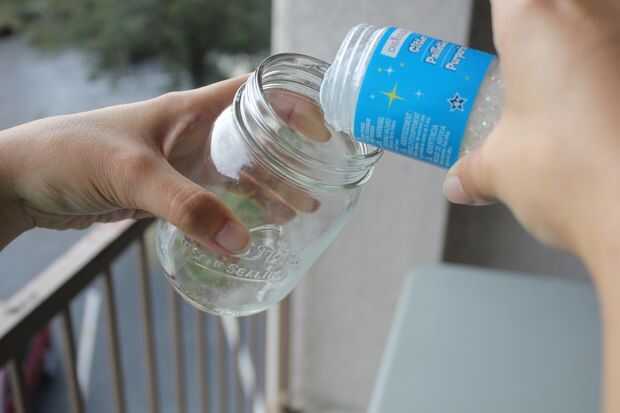 Añadir 2-3 cucharadas de glicerina al agua dependiendo del tamaño del frasco seleccionado.