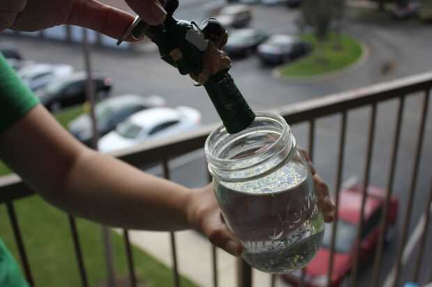 Una vez que el pegamento esté completamente seco, decoración del lugar boca abajo en la glicerina agua en la jarra.