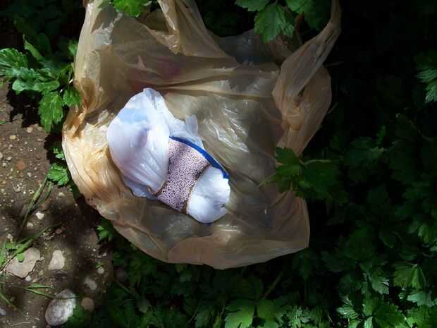 Salir al exterior y utilizar el multiuso adhesivo en atomizador y rocíe el área del zapato que usted quiere el brillo, iría por delante y poner una buena capa gruesa (más gruesa que la utilicé para que no tenga alguna mancha pelada cuando termines) y ser cuidado de toda la zona, especialmente a lo largo del borde inferior de la planta del pie. Usé una bolsa de plástico debajo de la zapata para evitar la cola en la hierba (Uhhh... ranúnculos, grrrr). También asegúrese de limpiar la boquilla en su pegamento de aerosol según las instrucciones en la lata.