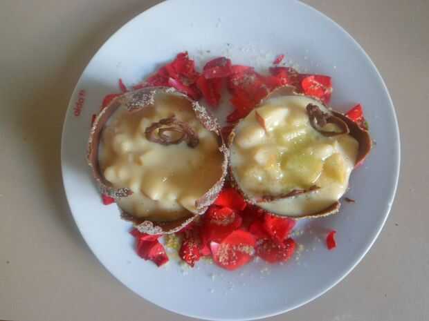 . -servir los flanes, helados, natilla de fruta en tazones de fuente de chocolate y disfrutar.