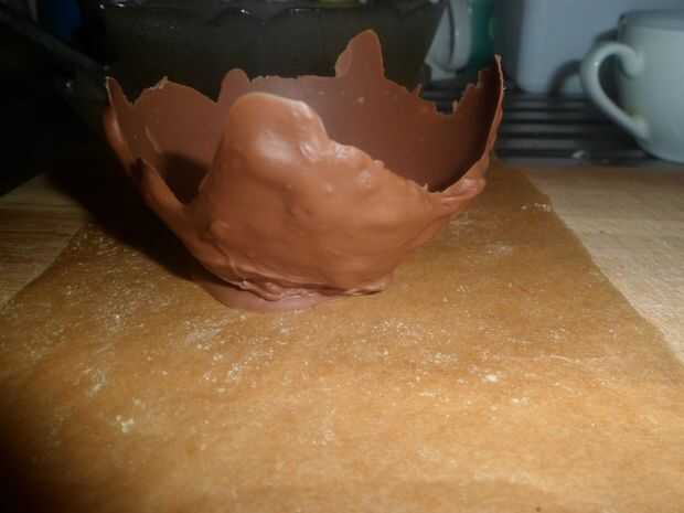 -chocolate comienza goteando hacia abajo. Dejarlo por lo que podemos cortar piezas adicionales después de tazón de fuente es formado.