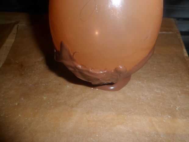 Gire la base del globo hacia arriba. enfriar el chocolate derretido. Ahora, Vierta lentamente el chocolate en la base del globo.