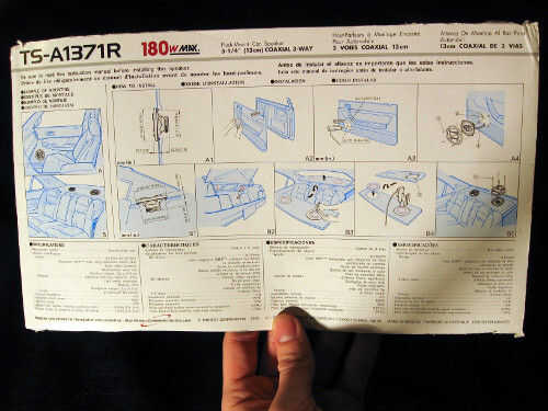 8-N. Posición por lo que la marca Pioneer es la derecha. y 3/32 agujeros en la madera son visibles entre las púas de montaje del altavoz.