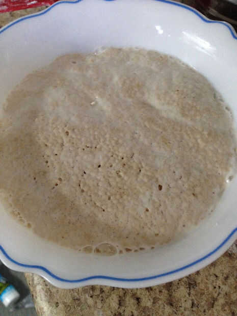 Mezclar leche, azúcar, harina y levadura, deje la floración de 10-15 minutos. Si la levadura es todavía buena, incluso 5 minutos se va ser floreció ya.