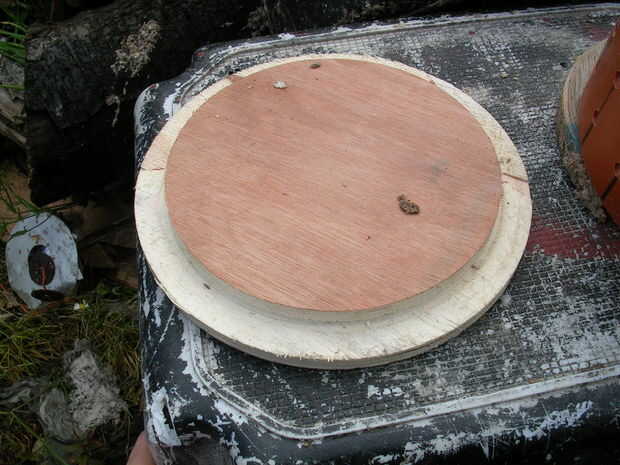 El nuevo disco otra vez es hecho de madera contrachapada de 3/4" pero empotrar unos 8-10 mm y es una poco floja para el tubo.