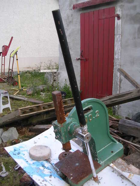 Añadir que un travesaño de bici vieja en el brazo de la prensa para darle más peso y salir más agua con menos esfuerzo.
