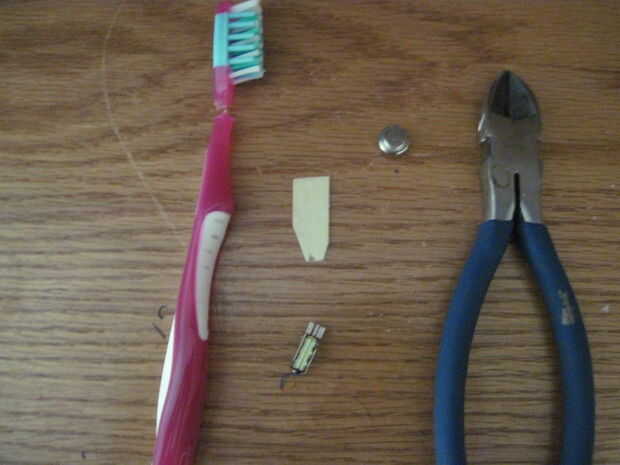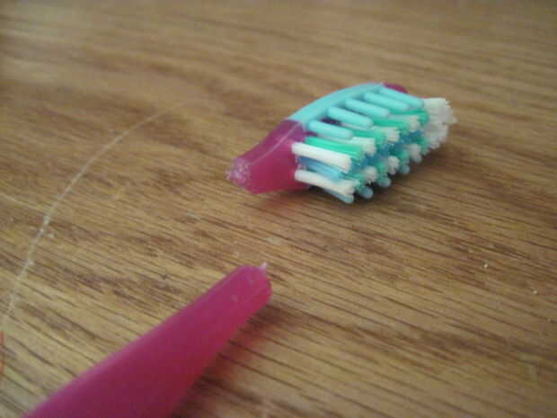 Primero se corta la cabeza del cepillo de dientes con el cortador de alambre. (el cepillo de dientes que usa se hizo de algún tipo de plástico blando para que los cortadores de alambre funcionaron muy bien)