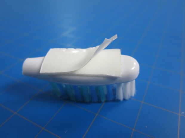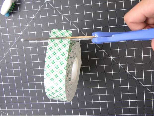 Luego, corte un pedazo de la cinta de doble cara el rodillo a la anchura de la cabeza del cepillo de dientes.