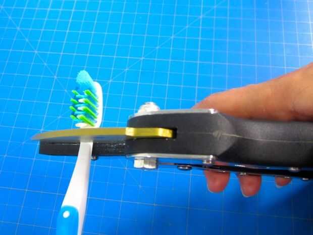 Para empezar, corta la parte superior del cepillo de dientes fuera usando esquileos de jardín de titanio.