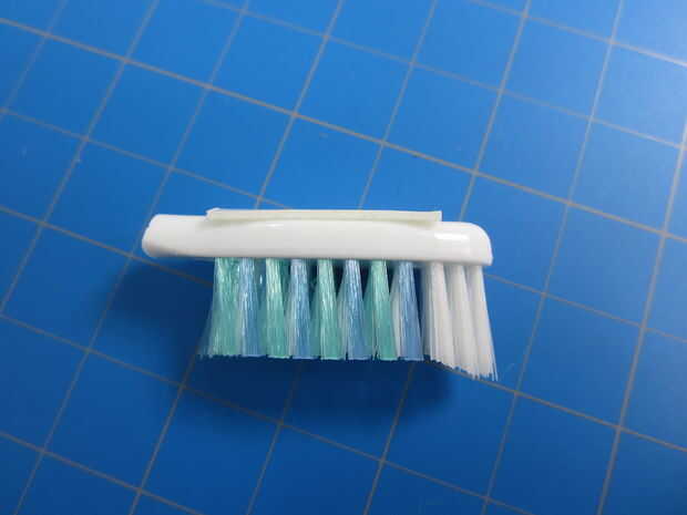 Pegarlo sobre la cabeza de cepillo de dientes y pele apagado la etiqueta superior.