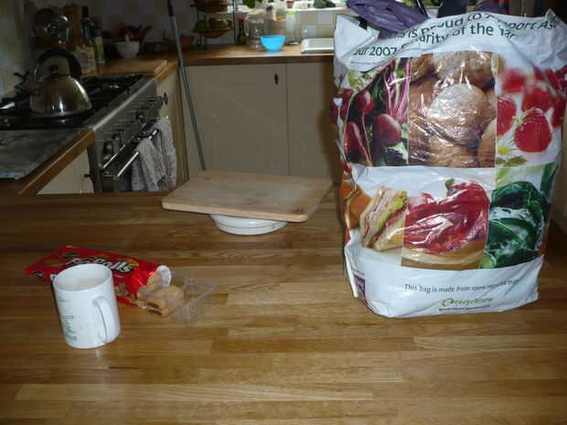 Así que después de un agradable paseo en el país tenía una taza de té y un rollo de higo antes de desempaquetar la bolsa con un montón de ortigas muy comprimidos.