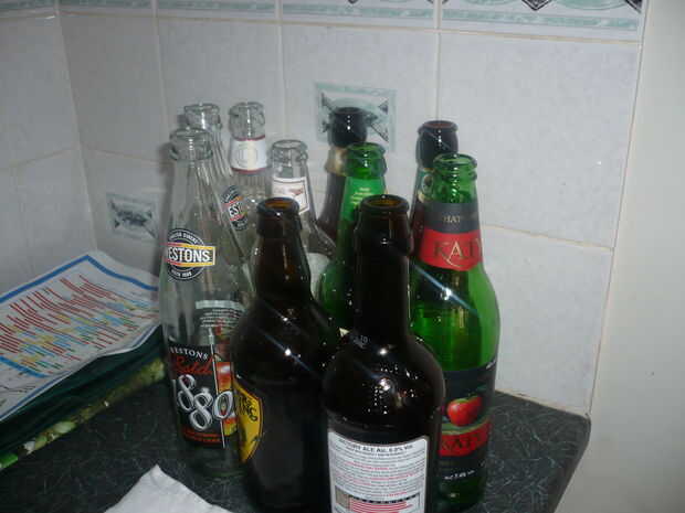 Con las botellas llenas, he usado pones casquillos de corona en las botellas, estas son fáciles de hacer, sólo les martillo sobre una herramienta barata.