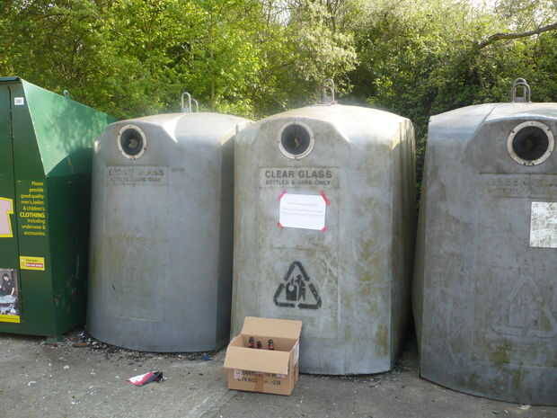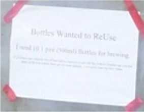 Voy a la orilla de la botella y sacó una caja y un cartel pegado al Banco pidiéndole a la gente para poner la botella en el cuadro.