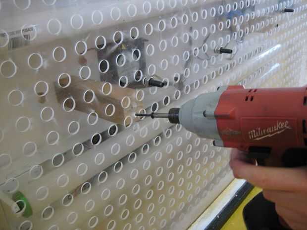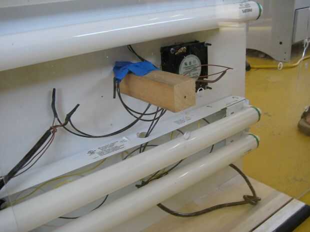Junto con las luces y los ventiladores dentro de la caja tuve que instalar unos soportes de madera que sostienen la parte posterior del acrílico tieso y en su lugar. Aparte de los apoyos, las hojas de acrílico son sólo sujeta el borde de la caja, así que era necesario algún tipo de sistema de refuerzo. Usé algunos desecho simple de 1 "x 1" corte a la longitud para las ayudas y les atornillan en las hojas de acrílico y la placa de soporte con tornillos para madera. Cuidado pretaladrar los agujeros en el acrílico - grietas fácilmente.