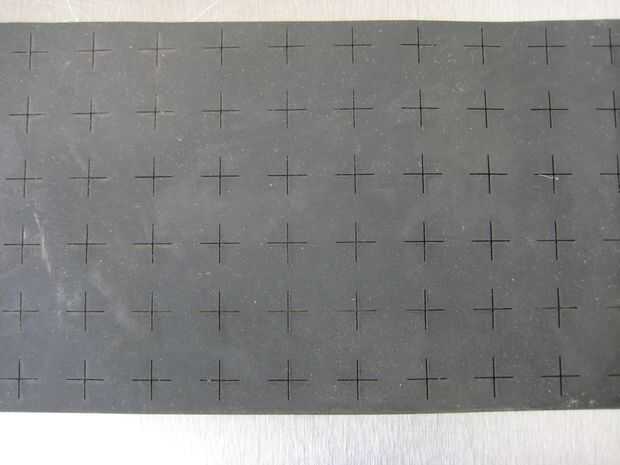 Me ordenó 6 hojas 12 "x 24" de 1/16" Santoprene (un tipo de goma que juega bien con Cortadoras Láser) y formada por un patrón de ranuras en Corel Draw que emparejó el espaciado de los agujeros en el acrílico y que podría fácilmente baldosas para que podría utilizar varias hojas de mi goma de 2 pies cuadrados para cubrir el área entera de la Lite Brite.