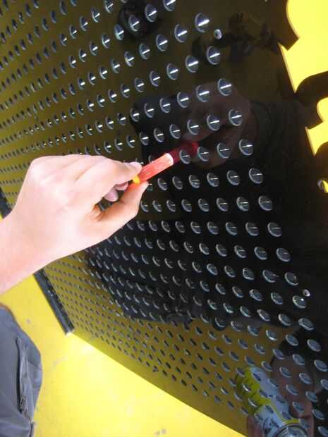 Crudamente que rodé el adhesivo en la parte posterior de la hoja de acrílico negro delantera, para que no se conseguir en las piezas de santoprene que demostraría en última instancia a través de los orificios, permitidos que se seque hasta que era pegajoso y luego colocar el santoprene y aplica presión hasta que establezca.
