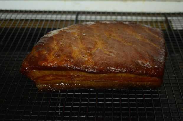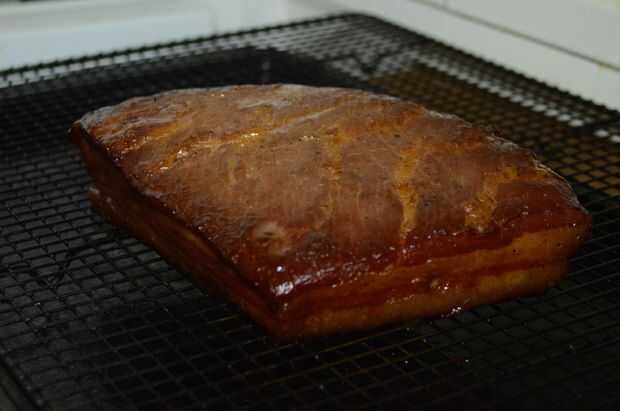 Buen marmoleo en el abdomen. Que puedo comer ahora, pero será frío, luego en rodajas y frito para desayunos y BLT.