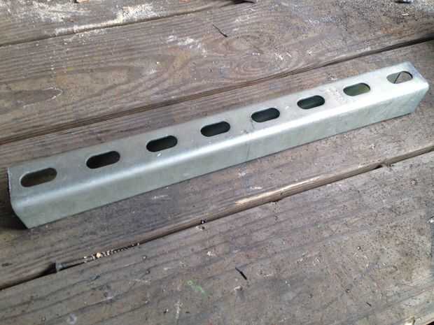 Corté un tramo de 22 pulgadas (56 cm) con la tronzadora. Quería para que el paso a ser lo suficientemente amplia como para que me quepa entre las asas.