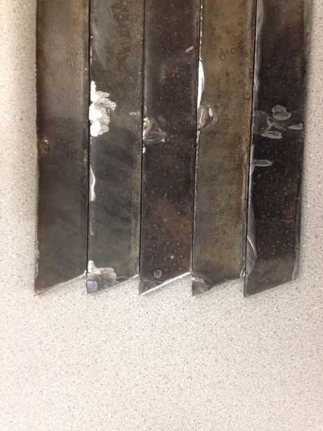 Por último, el extremo superior de la púa fue cortado en un ángulo de 30 grados. Las cuchillas angulares sirven para ayudar a disminuir la tensión en los usuarios más bajos detrás.