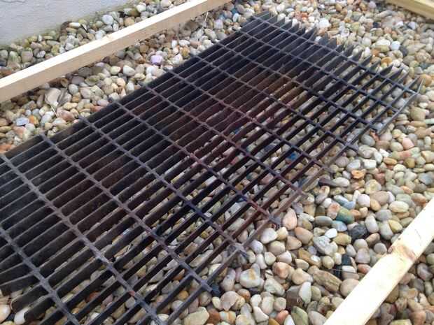En primer lugar, usé la amoladora angular con un disco de corte para cortar secciones de 15 pulgadas (38 cm) de un grate(x5) de acero recuperado.