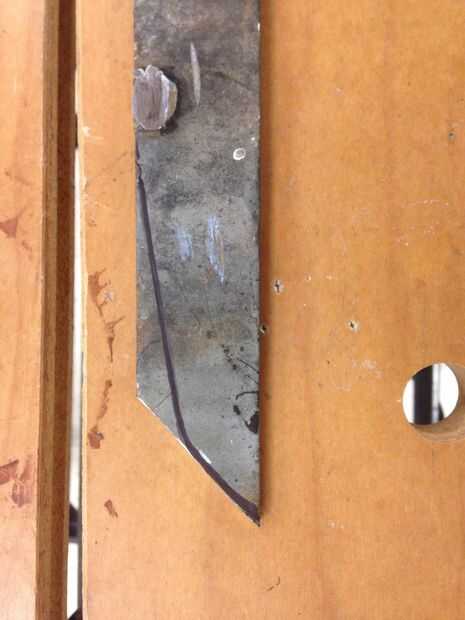 A continuación, esbozado y cortar un punto del cuchillo en el extremo inferior de la púa.