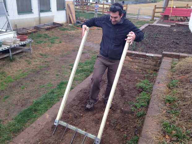 Yo estaba un poco nervioso acerca de sacar el broadfork para el jardín. Tenía miedo de que no soporta mi trabajo de soldadura. Empecé probando en una cama elevada que he usado durante los últimos dos temporadas. La cama tenía ser compactada en la temporada baja y hay una capa de roca de relleno que me impidió conseguir los dientes a su profundidad. Me complace el informe de que el broadfork superó mis expectativas y fue mucho más fácil que usando mi azada uva para preparar la cama. Fue agradable ver a los gusanos de tierra como levantó del suelo (gusanos que matarían más probable es que si yo estaba usando un rototiller). Ahora que sé que las soldaduras son fuertes, voy a pintar el broadfork con una pintura que se adhiere al metal y evitar la corrosión. También formo los mangos para hacer más cómoda al trabajar todas las camas que planeo agregar.