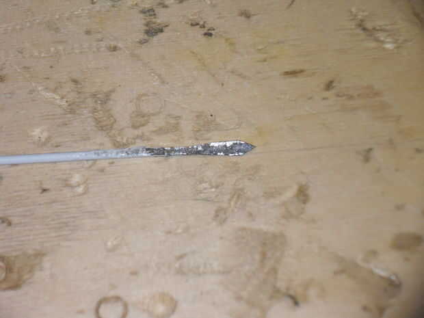 Ahora sacar su pequeño archivo o papel de lija para crear una pequeña hoja en los bordes de la punta.