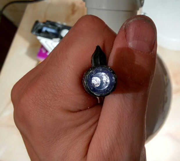Tomar la forma de la bala plástico parte, quitar la brida de él por lo que cabe dentro de la parte delantera del cañón, pone la parte hacia atrás para que el frente del va en primera (véase la foto). Esto amplifica las luces LED y también añadir espesor al barril del arma.