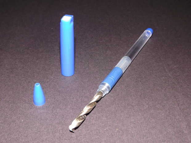 Bolígrafos desechables son instrumentos de escritura precisa que se fabrican con precisión. También están diseñados para contener los objetos cilíndricos. Es por eso pueden ser un buen candidato para la celebración de los pedacitos de taladro. Y porque ibas a tirar de todos modos son gratis.