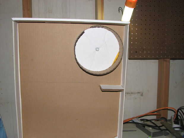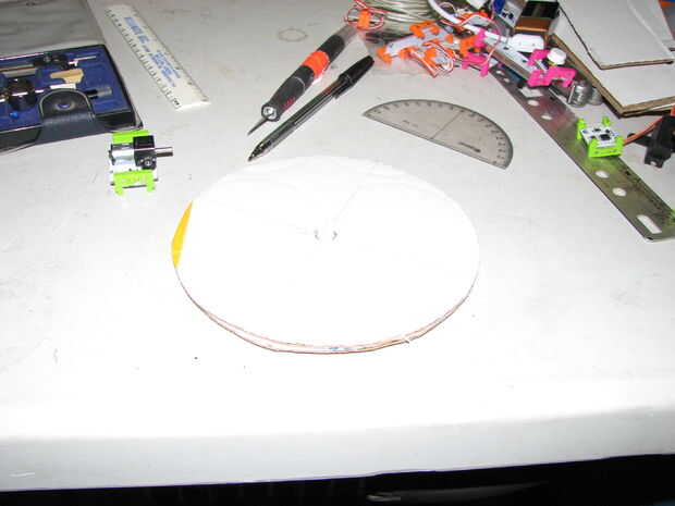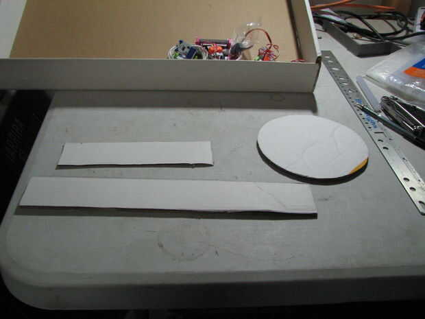 Quería un dispensador para la goma, así que subió con la idea de una tolva redonda con un agujero que gira alrededor y dejó escapar un par de piezas. Corté algunos círculos redondos pegan a ellos juntos y el pin del motor en el kit. Perfectamente esto montaría el motor pegado a la espalda y un agujero asomó a través de la unidad.