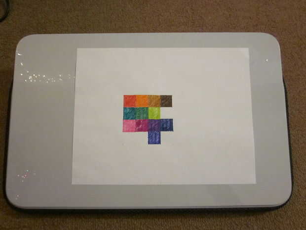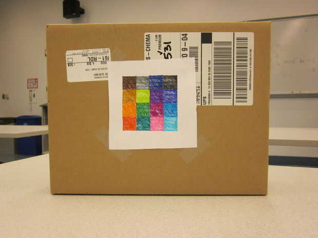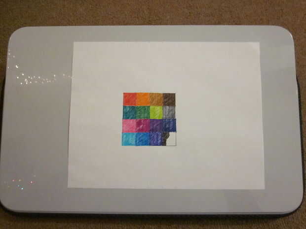 Obtener una hoja de papel blanco liso - algo materia, no brillante. Seleccionar 16 colores de tus favoritos marcadores/pinturas/color lápices-otra vez, colores mates, sin brillos luminosos. Marcar una cuadrícula de 4 x 4 (mina era 3/4" por cada lado de una plaza individual). Color EM en! Mientras que el orden no importa específicamente, puede ser útil para colocar el cuadrado negro en una de las esquinas por lo que puede ser utilizado para fines de orientación.