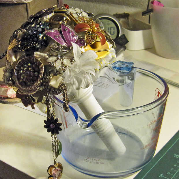 Por desgracia, se me olvidaba las fotos hacen de este paso antes de la boda de mi amigo. Así que sólo tengo uno de mi propio ramo de broche. Espero que usted puede ver lo que quiero decir.