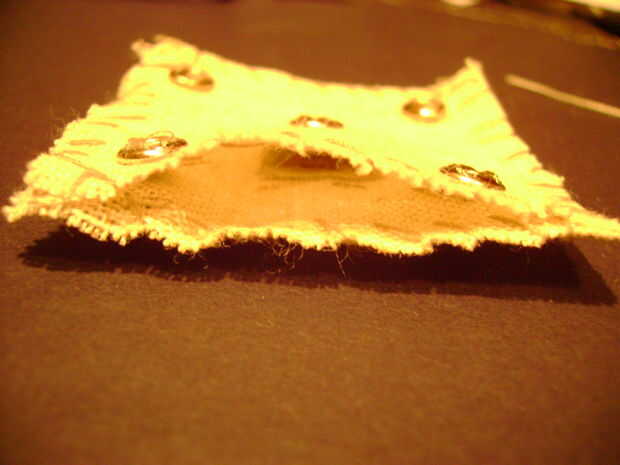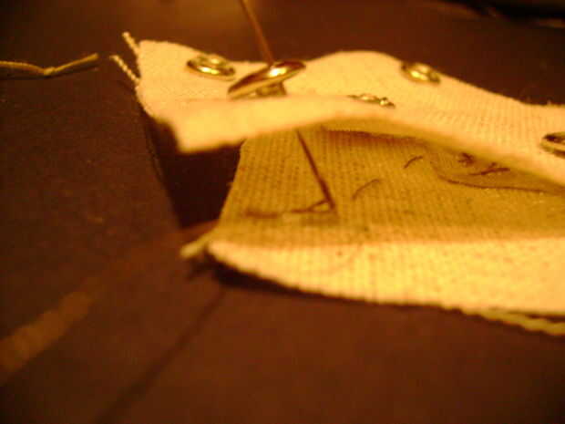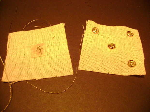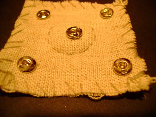 5. volver a la primera plaza y coser los 3 otros broches hembra en las 3 esquinas (como se muestra en la imagen). Para estos pernos, utilice un hilo regular.