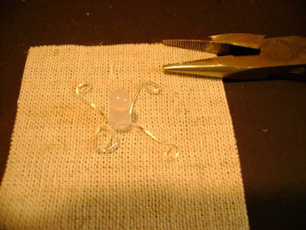 2, utilice alicates de punta para doblar las cuatro patas en especie de pequeños círculos (ver imagen).